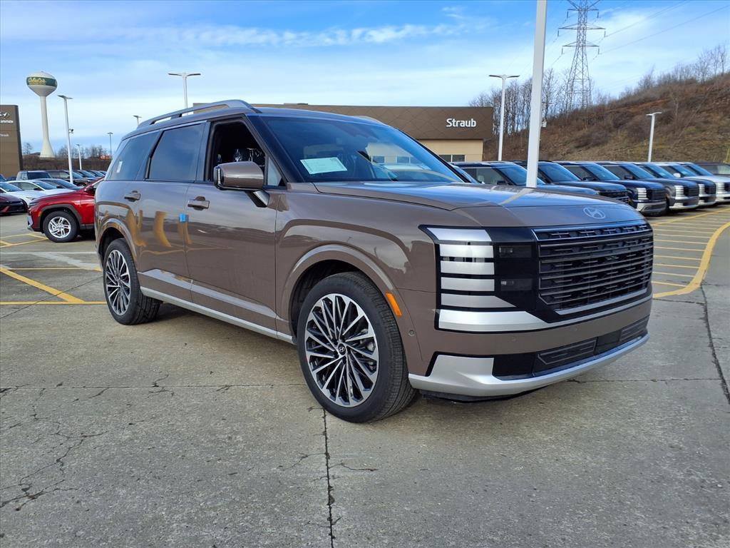 Cast Iron Brown Pearl 2026 Hyundai Palisade Hybrid Calligraphy AWD 6-Speed Automatic 2.5L Turbocharged GDI 4-Cylinder Hybrid This Vehicle Includes the Following Features:, 2.5L Turbocharged GDI 4-Cylinder Hybrid. Option Group 01, 2.5L Turbocharged GDI 4-Cylinder Hybrid, 14 Speakers, 3rd row seats: split-bench, 4-Wheel Disc Brakes, ABS brakes, Air Conditioning, Alloy wheels, AM/FM radio: SiriusXM, Apple CarPlay & Android Auto, Audio memory, Auto High-beam Headlights, Auto-dimming door mirrors, Auto-dimming Rear-View mirror, Auto-leveling suspension, Automatic temperature control, Brake assist, Bumpers: body-color, Cargo Blocks, Cargo Net, Cargo Tray, Carpeted Floor Mats, Compass, Delay-off headlights, Driver door bin, Driver vanity mirror, Dual front impact airbags, Dual front side impact airbags, Electronic Stability Control, Emergency communication system: None, Exterior Parking Camera Rear, First Aid Kit, Four wheel independent suspension, Front anti-roll bar, Front Bucket Seats, Front Center Armrest, Front dual zone A/C, Front reading lights, Fully automatic headlights, Garage door transmitter: HomeLink, Genuine wood console insert, Genuine wood dashboard insert, Heads-Up Display, Heated and Ventilated Front Bucket Seats, Heated door mirrors, Heated front seats, Heated rear seats, Heated steering wheel, HVAC memory, Illuminated entry, Knee airbag, Leather steering wheel, Low tire pressure warning, Memory seat, Navigation System, Occupant sensing airbag, Outside temperature display, Overhead airbag, Overhead console, Panic alarm, Passenger door bin, Passenger vanity mirror, Power door mirrors, Power driver seat, Power Liftgate, Power moonroof, Power passenger seat, Power steering, Power windows, Premium Nappa Leather Seat Trim, Radio data system, Radio: Infotainment Navigation System, Rain sensing wipers, Rear air conditioning, Rear anti-roll bar, Rear audio controls, Rear reading lights, Rear side impact airbag, Rear window defroster, Rear window wiper, Reclining 3rd row seat, Remote keyless entry, Roadside Assistance Kit, Security system, Speed control, Split folding rear seat, Spoiler, Steering wheel mounted audio controls, Tachometer, Telescoping steering wheel, Tilt steering wheel, Traction control, Trip computer, Turn signal indicator mirrors, Variably intermittent wipers, Ventilated front seats, Ventilated rear seats, and Wheels: 21x 8.5J Alloy. At Friendship Hyundai of Beckley, we believe that purchasing a vehicle should be a rewarding and enjo