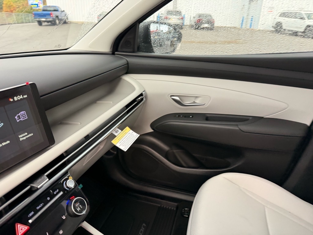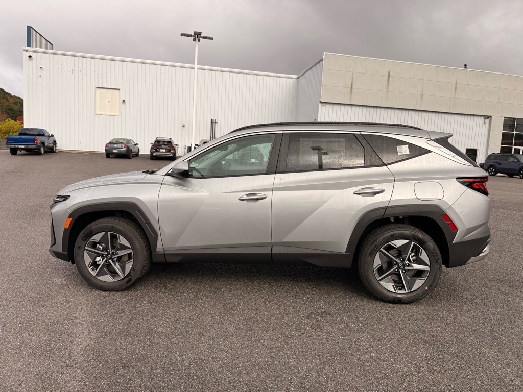 Shimmering Silver 2026 Hyundai Tucson SEL AWD 8-Speed Automatic with SHIFTRONIC 2.5L I4 DGI DOHC 16V LEV3-SULEV30 187hp AWD. Option Group 01, AWD, 18x 7.5J Alloy Wheels, 4-Wheel Disc Brakes, 6 Speakers, ABS brakes, Air Conditioning, All Season Fitted Liners, Alloy wheels, AM/FM radio: SiriusXM, Apple CarPlay & Android Auto, Auto High-beam Headlights, Automatic temperature control, Brake assist, Bumpers: body-color, Cargo Net, Cargo Organizer, Cargo Tray, Carpeted Floor Mats, Delay-off headlights, Driver door bin, Driver vanity mirror, Dual front impact airbags, Dual front side impact airbags, Electronic Stability Control, Emergency communication system: Bluelink , First Aid Kit, Four wheel independent suspension, Front anti-roll bar, Front Bucket Seats, Front Center Armrest, Front dual zone A/C, Front reading lights, Fully automatic headlights, H-Tex Leatherette Seat Trim, Heated door mirrors, Heated Front Bucket Seats, Heated front seats, Illuminated entry, Low tire pressure warning, Occupant sensing airbag, Outside temperature display, Overhead airbag, Overhead console, Panic alarm, Passenger door bin, Passenger vanity mirror, Power door mirrors, Power driver seat, Power Liftgate, Power steering, Power windows, Radio data system, Radio: AM/FM/HD Audio System, Rear anti-roll bar, Rear reading lights, Rear seat center armrest, Rear side impact airbag, Rear window defroster, Rear window wiper, Remote keyless entry, Security system, Speed control, Split folding rear seat, Spoiler, Steering wheel mounted audio controls, Tachometer, Telescoping steering wheel, Tilt steering wheel, Traction control, Trip computer, and Variably intermittent wipers. 24/30 City/Highway MPG