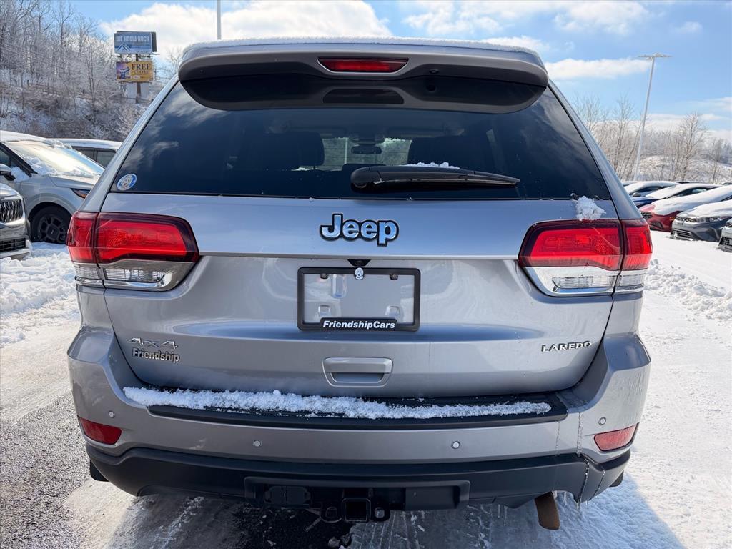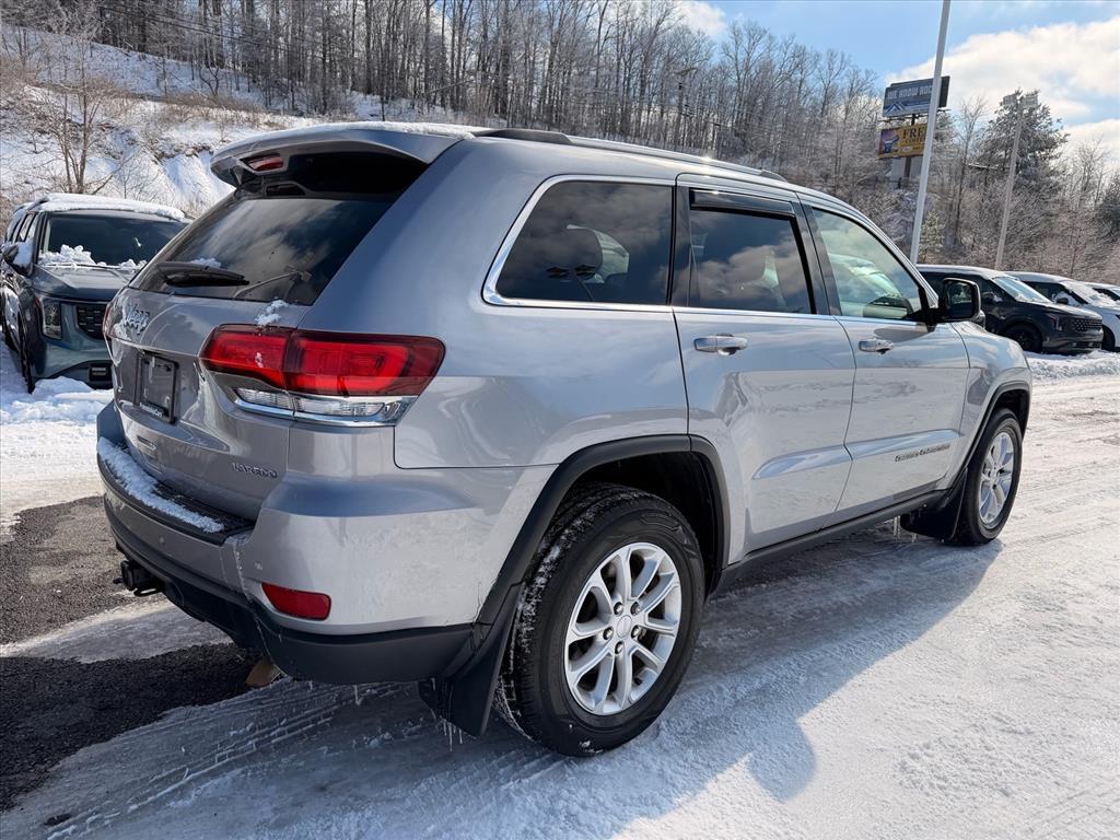 Billet Silver Metallic Clearcoat 2021 Jeep Grand Cherokee Laredo E 4WD 8-Speed Automatic 3.6L V6 24V VVT 4WD. Odometer is 52227 miles below market average! Quick Order Package 2BE Laredo E, Trailer Tow Group IV (180 Amp Alternator, 7 & 4 Pin Wiring Harness, Class IV Receiver Hitch, Heavy-Duty Engine Cooling, and Rear Load Leveling Suspension), 4WD, 3.45 Rear Axle Ratio, 4-Wheel Disc Brakes, 6 Speakers, ABS brakes, Air Conditioning, Alloy wheels, AM/FM radio: SiriusXM, Anti-whiplash front head restraints, Apple CarPlay, Apple CarPlay/Android Auto, Automatic temperature control, Brake assist, Bumpers: body-color, Cloth Bucket Seats, Compass, Delay-off headlights, Driver door bin, Driver vanity mirror, Dual front impact airbags, Dual front side impact airbags, Electronic Stability Control, Four wheel independent suspension, Front anti-roll bar, Front Bucket Seats, Front Center Armrest w/Storage, Front dual zone A/C, Front fog lights, Front reading lights, Fully automatic headlights, Google Android Auto, GPS Antenna Input, Heated door mirrors, Illuminated entry, Integrated Voice Command w/Bluetooth, Knee airbag, Leather Shift Knob, Low tire pressure warning, Normal Duty Suspension, Occupant sensing airbag, Outside temperature display, Overhead airbag, Overhead console, Panic alarm, ParkView Rear Back-Up Camera, Passenger door bin, Passenger vanity mirror, Power door mirrors, Power driver seat, Power steering, Power windows, Radio data system, Radio: Uconnect 4 w/7Display, Rear anti-roll bar, Rear reading lights, Rear seat center armrest, Rear window defroster, Rear window wiper, Remote keyless entry, Roof rack: rails only, Speed control, Speed-sensing steering, Speed-Sensitive Wipers, Split folding rear seat, Spoiler, Steering Wheel Mounted Audio Controls, Steering wheel mounted audio controls, Tachometer, Telescoping steering wheel, Tilt steering wheel, Traction control, Trip computer, Variably intermittent wipers, and Wheels: 18x 8.0Fine Silver Aluminum.