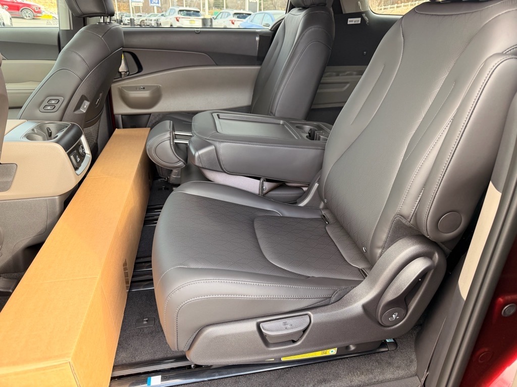 Flare Red 2026 Kia Carnival SX FWD 8-Speed Automatic V6 3.51 Axle Ratio, 3rd row seats: split-bench, 4-Wheel Disc Brakes, 8 Speakers, ABS brakes, Air Conditioning, Alloy wheels, AM/FM radio: SiriusXM, Apple CarPlay & Android Auto, Artificial Leather Seat Trim, Auto High-beam Headlights, Automatic temperature control, Brake assist, Bumpers: body-color, Compass, Cross Bars, Delay-off headlights, Driver door bin, Driver vanity mirror, Dual front impact airbags, Dual front side impact airbags, Electronic Stability Control, Emergency communication system, Exterior Parking Camera Rear, Four wheel independent suspension, Front anti-roll bar, Front Bucket Seats, Front Center Armrest, Front dual zone A/C, Front fog lights, Front reading lights, Fully automatic headlights, Heated door mirrors, Heated front seats, Illuminated entry, Knee airbag, Leather Shift Knob, Leather steering wheel, Low tire pressure warning, Memory seat, Navigation System, Occupant sensing airbag, Outside temperature display, Overhead airbag, Overhead console, Panic alarm, Passenger door bin, Passenger vanity mirror, Power 2nd-Row Moonroof, Power door mirrors, Power driver seat, Power Liftgate, Power moonroof, Power passenger seat, Power steering, Power windows, Radio: AM/FM/HD Audio System, Rain sensing wipers, Rear air conditioning, Rear anti-roll bar, Rear reading lights, Rear window defroster, Rear window wiper, Reclining 3rd row seat, Remote keyless entry, Security system, Speed control, Speed-sensing steering, Split folding rear seat, Spoiler, Steering wheel mounted audio controls, Tachometer, Telescoping steering wheel, Tilt steering wheel, Traction control, Trip computer, Turn signal indicator mirrors, Variably intermittent wipers, Ventilated front seats, Wheels: 7.5J x 19Alloy Dark Edition, and Wheels: 7.5J x 19Black Alloy. 18/26 City/Highway MPG