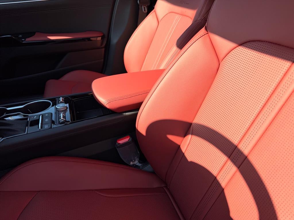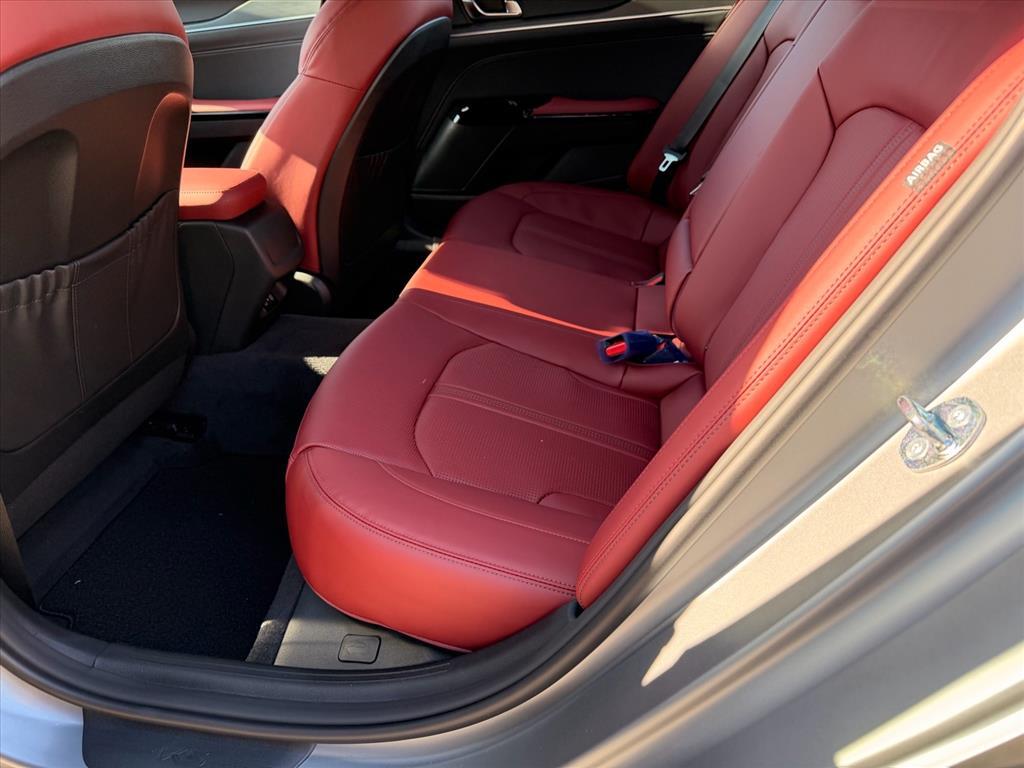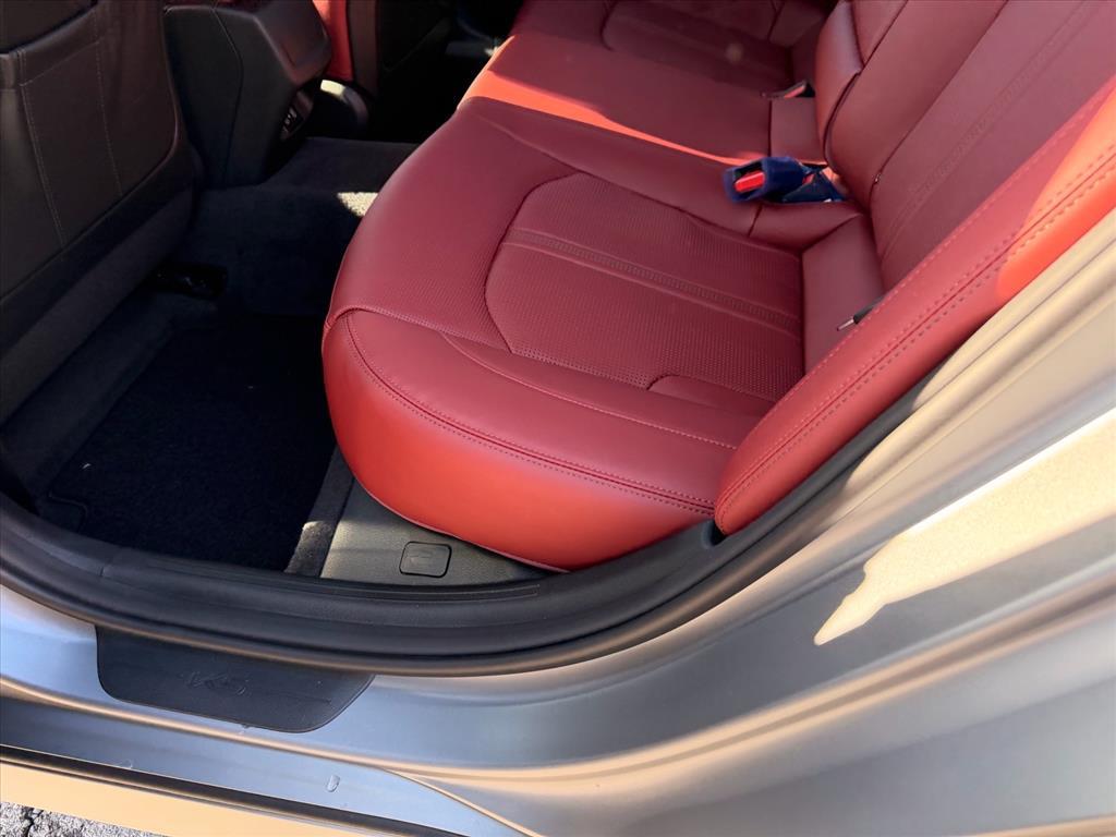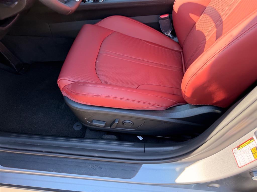 Steel Matte Gray 2026 Kia K5 GT-Line AWD 8-Speed Automatic I4 GT-Line Red Interior Package (SynTex Seat Trim), 4-Wheel Disc Brakes, 6 Speakers, ABS brakes, Air Conditioning, Alloy wheels, AM/FM radio: SiriusXM, Apple CarPlay & Android Auto, Auto High-beam Headlights, Automatic temperature control, Brake assist, Bumpers: body-color, Carpeted Floor Mats, Delay-off headlights, Driver door bin, Driver vanity mirror, Dual front impact airbags, Dual front side impact airbags, Electronic Stability Control, Emergency communication system: Kia Connect (includes 1 year free trial), Four wheel independent suspension, Front anti-roll bar, Front Bucket Seats, Front Center Armrest, Front dual zone A/C, Front fog lights, Front reading lights, Fully automatic headlights, Heated door mirrors, Heated Front Bucket Seats, Heated front seats, Heated steering wheel, Illuminated entry, Knee airbag, Leather Shift Knob, Leather steering wheel, Low tire pressure warning, Navigation System, Occupant sensing airbag, Outside temperature display, Overhead airbag, Overhead console, Panic alarm, Passenger door bin, Passenger vanity mirror, Power door mirrors, Power driver seat, Power steering, Power windows, Radio data system, Radio: AM/FM Audio System, Rear anti-roll bar, Rear seat center armrest, Rear side impact airbag, Rear window defroster, Remote keyless entry, Security system, Speed control, Speed-sensing steering, Split folding rear seat, Sport steering wheel, Steering wheel mounted audio controls, Tachometer, Telescoping steering wheel, Tilt steering wheel, Traction control, Trip computer, Turn signal indicator mirrors, Variably intermittent wipers, and Wheels: 18x 7.5J Gloss Black Machined Finish Alloy. 24/33 City/Highway MPG