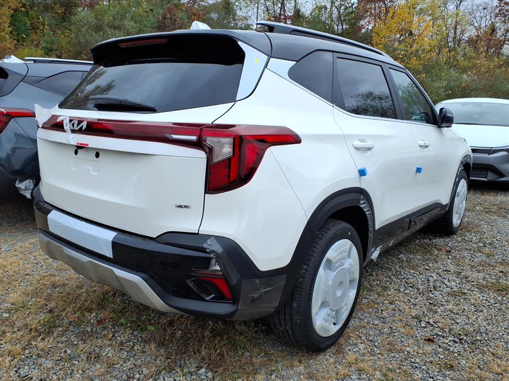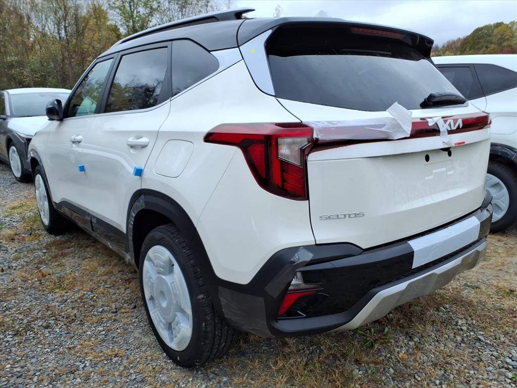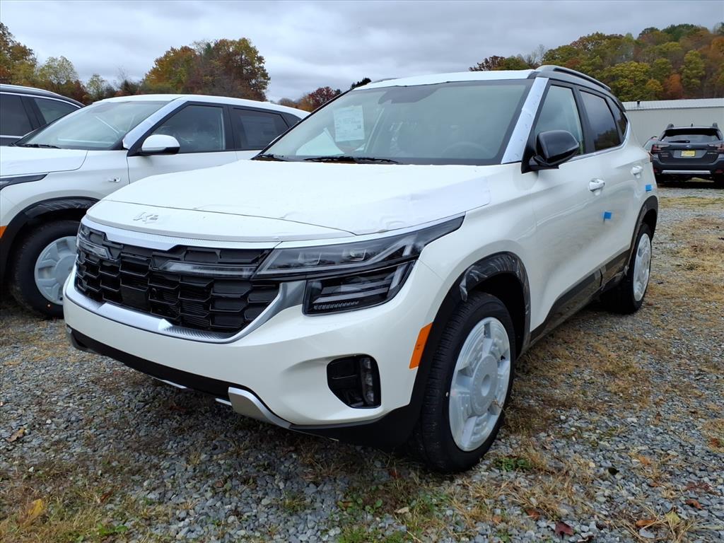 Clear White/Black Roof 2026 Kia Seltos SX AWD 8-Speed Automatic I4 4-Wheel Disc Brakes, 8 Speakers, ABS brakes, Air Conditioning, Alloy wheels, AM/FM radio: SiriusXM, Apple CarPlay & Android Auto, Artificial Leather Seat Trim, Auto High-beam Headlights, Auto-dimming Rear-View mirror, Automatic temperature control, Brake assist, Bumpers: body-color, Carpet Floor Mats, Delay-off headlights, Driver door bin, Driver vanity mirror, Dual front impact airbags, Dual front side impact airbags, Electronic Stability Control, Emergency communication system: 911 Connect, Exterior Parking Camera Rear, Four wheel independent suspension, Front anti-roll bar, Front Bucket Seats, Front Center Armrest, Front fog lights, Front reading lights, Fully automatic headlights, Heated door mirrors, Heated Front Bucket Seats (3-Steps), Heated front seats, Illuminated entry, Leather Shift Knob, Leather steering wheel, Low tire pressure warning, Navigation System, Occupant sensing airbag, Outside temperature display, Overhead airbag, Overhead console, Panic alarm, Passenger door bin, Passenger vanity mirror, Power door mirrors, Power driver seat, Power Liftgate, Power steering, Power windows, Rear seat center armrest, Rear window defroster, Rear window wiper, Remote keyless entry, Security system, Speed control, Speed-sensing steering, Split folding rear seat, Spoiler, Sport steering wheel, Steering wheel mounted audio controls, Tachometer, Telescoping steering wheel, Tilt steering wheel, Traction control, Trip computer, Turn signal indicator mirrors, and Variably intermittent wipers. 24/27 City/Highway MPG