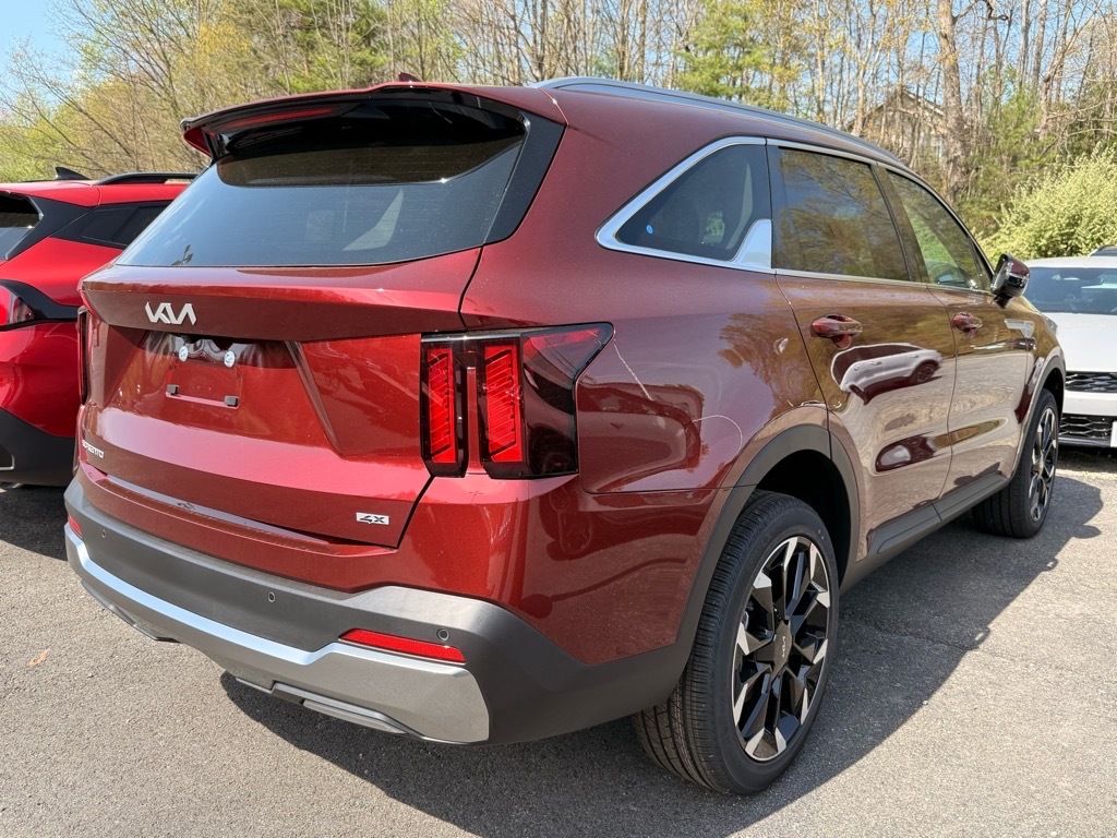 Dawning Red 2025 Kia Sorento EX AWD 8 Speed Dual Clutch 2.5L I4 DGI Turbocharged DOHC 16V LEV3-SULEV30 281hp AWD. 20/27 City/Highway MPG