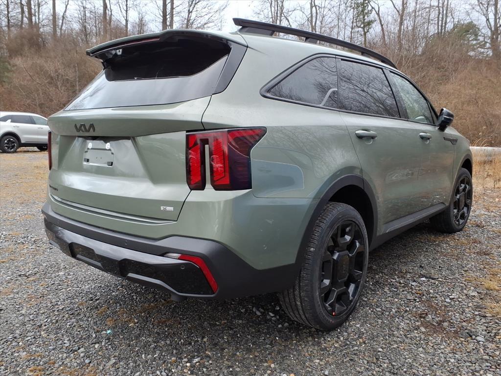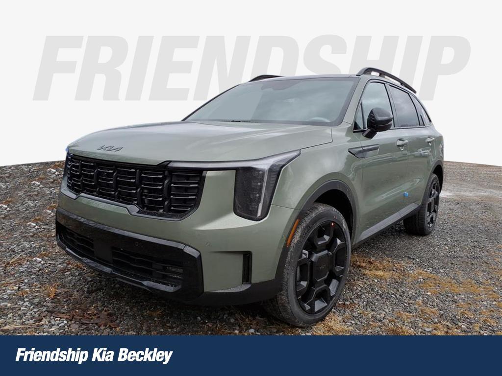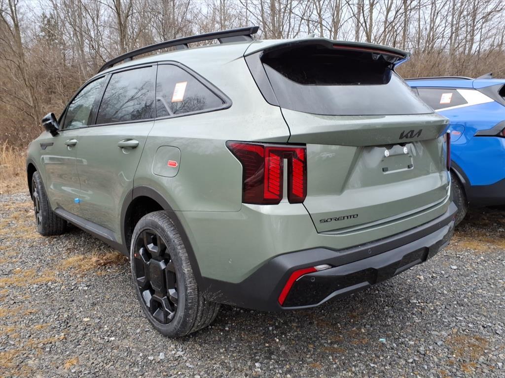 Jungle Green 2026 Kia Sorento X-Line SX Prestige AWD 8 Speed Dual Clutch 2.5L I4 DGI Turbocharged DOHC 16V LEV3-SULEV30 281hp AWD. Olive Brown Leather Package, AWD, 12 Speakers, 3rd row seats: split-bench, 4-Wheel Disc Brakes, ABS brakes, Air Conditioning, Alloy wheels, AM/FM radio: SiriusXM, Apple CarPlay & Android Auto, Auto High-beam Headlights, Auto-dimming Rear-View mirror, Automatic temperature control, Brake assist, Bumpers: body-color, Carpeted Floor Mats, Delay-off headlights, Driver door bin, Driver vanity mirror, Dual front impact airbags, Dual front side impact airbags, Electronic Stability Control, Emergency communication system: 911 Connect, Exterior Parking Camera Rear, Four wheel independent suspension, Front anti-roll bar, Front Bucket Seats, Front Center Armrest, Front dual zone A/C, Front fog lights, Front reading lights, Fully automatic headlights, Garage door transmitter: HomeLink, Heated and Ventilated Front Bucket Seats, Heated door mirrors, Heated front seats, Heated rear seats, Heated steering wheel, Illuminated entry, Knee airbag, Leather Shift Knob, Leather steering wheel, Low tire pressure warning, Memory seat, Navigation System, Occupant sensing airbag, Outside temperature display, Overhead airbag, Overhead console, Panic alarm, Passenger door bin, Passenger vanity mirror, Perforated Genuine Leather Seat Trim, Power door mirrors, Power driver seat, Power Liftgate, Power moonroof, Power passenger seat, Power steering, Power windows, Radio data system, Radio: AM/FM Bose Premium Audio System, Rain sensing wipers, Rear anti-roll bar, Rear reading lights, Rear side impact airbag, Rear window defroster, Rear window wiper, Remote keyless entry, Security system, Speed control, Speed-sensing steering, Split folding rear seat, Spoiler, Steering wheel mounted audio controls, Tachometer, Telescoping steering wheel, Tilt steering wheel, Traction control, Trip computer, Turn signal indicator mirrors, Variably intermittent wipers, Ventilated front seats, and Wheels: 20Gloss Black x-Line Alloy. 20/27 City/Highway MPG