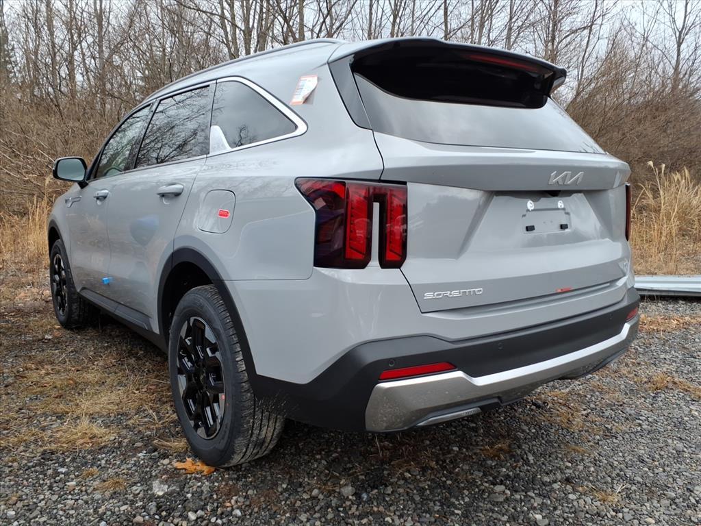 Wolf Gray 2026 Kia Sorento S AWD 8-Speed Automatic 2.5L I4 DGI DOHC 16V LEV3-SULEV30 191hp AWD. AWD, 3rd row seats: split-bench, 4-Wheel Disc Brakes, 6 Speakers, ABS brakes, Air Conditioning, Alloy wheels, AM/FM radio: SiriusXM, Apple CarPlay & Android Auto, Auto High-beam Headlights, Automatic temperature control, Brake assist, Bumpers: body-color, Carpeted Floor Mats, Delay-off headlights, Driver door bin, Driver vanity mirror, Dual front impact airbags, Dual front side impact airbags, Electronic Stability Control, Emergency communication system: 911 Connect, Exterior Parking Camera Rear, Four wheel independent suspension, Front anti-roll bar, Front Bucket Seats, Front Center Armrest, Front dual zone A/C, Front reading lights, Fully automatic headlights, Heated door mirrors, Heated Front Bucket Seats, Heated front seats, Illuminated entry, Knee airbag, Leather Shift Knob, Leather steering wheel, Low tire pressure warning, Occupant sensing airbag, Outside temperature display, Overhead airbag, Overhead console, Panic alarm, Passenger door bin, Passenger vanity mirror, Power door mirrors, Power driver seat, Power steering, Power windows, Radio data system, Radio: AM/FM Standard Sound System, Rear anti-roll bar, Rear reading lights, Rear seat center armrest, Rear side impact airbag, Rear window defroster, Rear window wiper, Remote keyless entry, Security system, Speed control, Speed-sensing steering, Split folding rear seat, Spoiler, Steering wheel mounted audio controls, SynTex Artificial Leather Seat Trim, Tachometer, Telescoping steering wheel, Tilt steering wheel, Traction control, Trip computer, Turn signal indicator mirrors, Variably intermittent wipers, and Wheels: 18Gloss Black Alloy. 23/28 City/Highway MPG