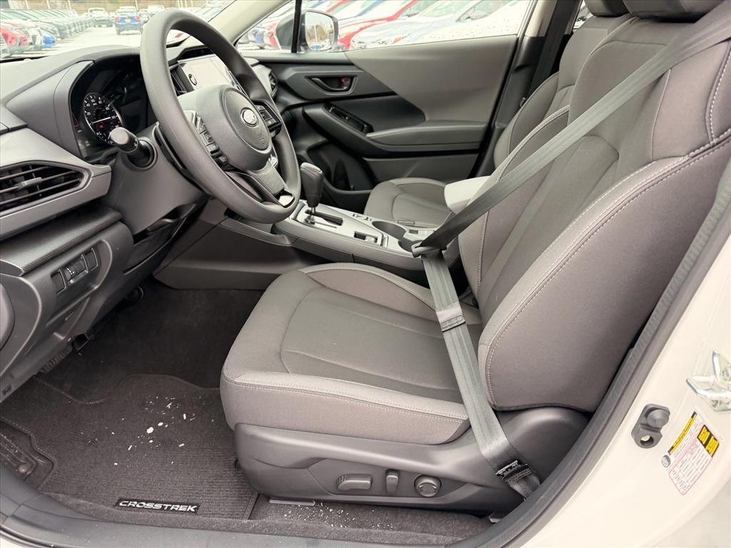 Crystal White Pearl 2026 Subaru Crosstrek Premium AWD Lineartronic CVT 2.5L 4-Cylinder DOHC 16V This Vehicle Includes the Following Features:. Standard Model, 4-Wheel Disc Brakes, 6 Speakers, ABS brakes, Air Conditioning, Alloy wheels, AM/FM radio: SiriusXM, Anti-whiplash front head restraints, Auto High-beam Headlights, Auto-Dimming Mirror with Compass and HomeLink, Automatic temperature control, Brake assist, Bumpers: body-color, Cloth Upholstery, Driver door bin, Driver vanity mirror, Dual front impact airbags, Dual front side impact airbags, Electronic Stability Control, Emergency communication system: MySubaru Companion (5-years free), Exterior Parking Camera Rear, Four wheel independent suspension, Front anti-roll bar, Front Bucket Seats, Front Center Armrest, Front dual zone A/C, Front fog lights, Front reading lights, Fully automatic headlights, Illuminated entry, Knee airbag, LED Upgrade, Low tire pressure warning, Occupant sensing airbag, Outside temperature display, Overhead airbag, Overhead console, Panic alarm, Passenger door bin, Passenger vanity mirror, Power door mirrors, Power steering, Power windows, Radio data system, Radio: Subaru 11.6Multimedia Plus System, Rear anti-roll bar, Rear Bumper Cover, Rear seat center armrest, Rear side impact airbag, Rear window defroster, Rear window wiper, Remote keyless entry, Security system, Speed control, Speed-sensing steering, Split folding rear seat, Spoiler, Steering wheel mounted audio controls, Tachometer, Telescoping steering wheel, Tilt steering wheel, Traction control, Trip computer, Turn signal indicator mirrors, Variably intermittent wipers, and Wheels: 17x 7.0J Machine Finish Aluminum-Alloy. 26/33 City/Highway MPG