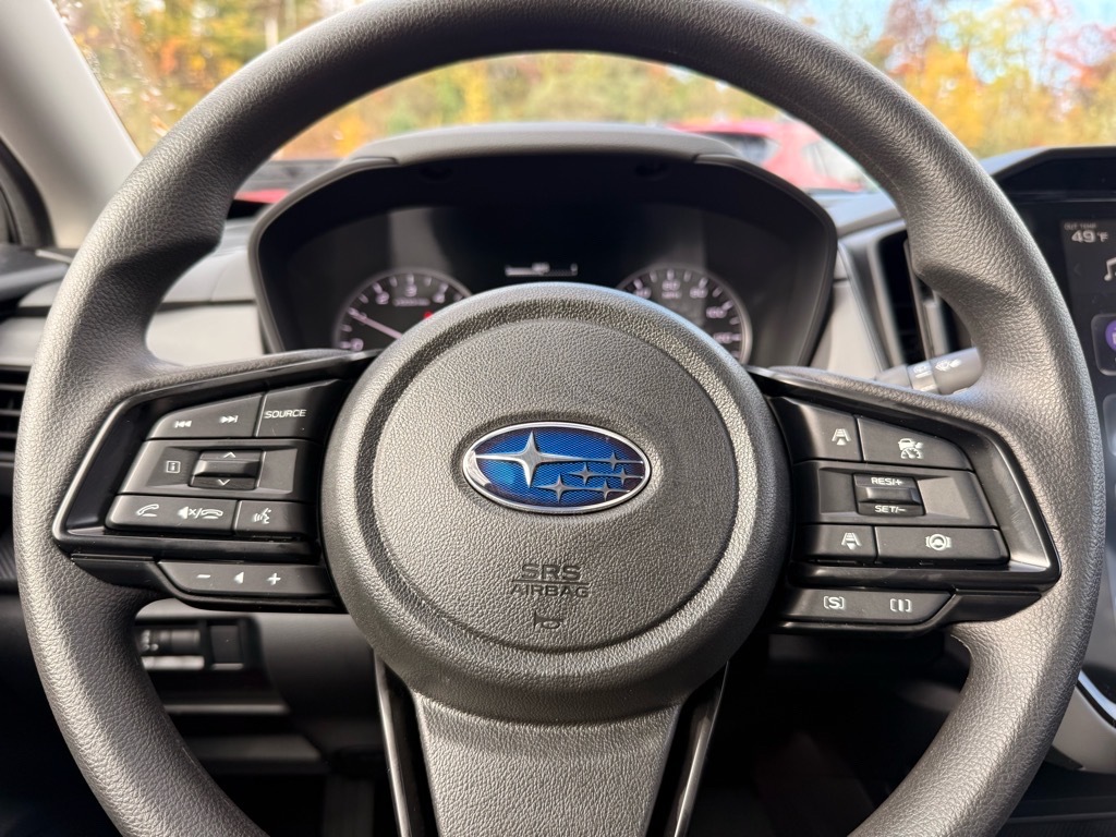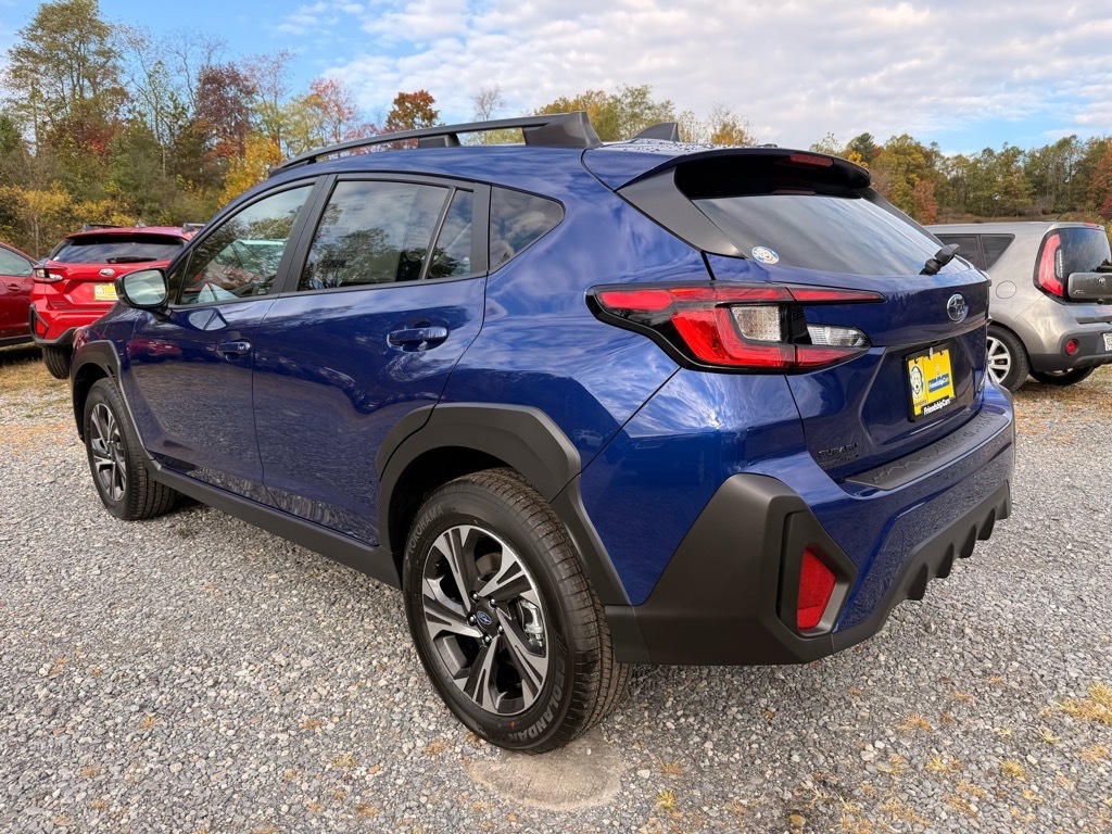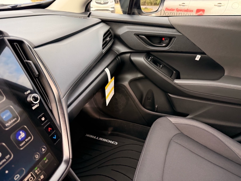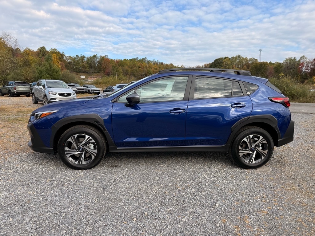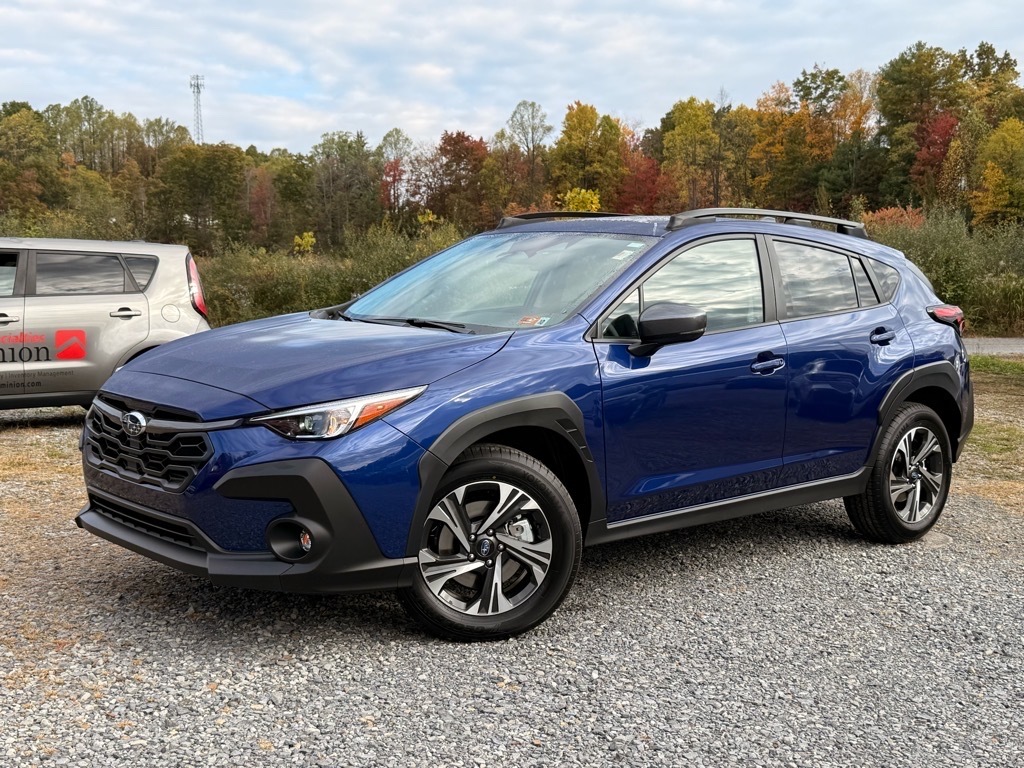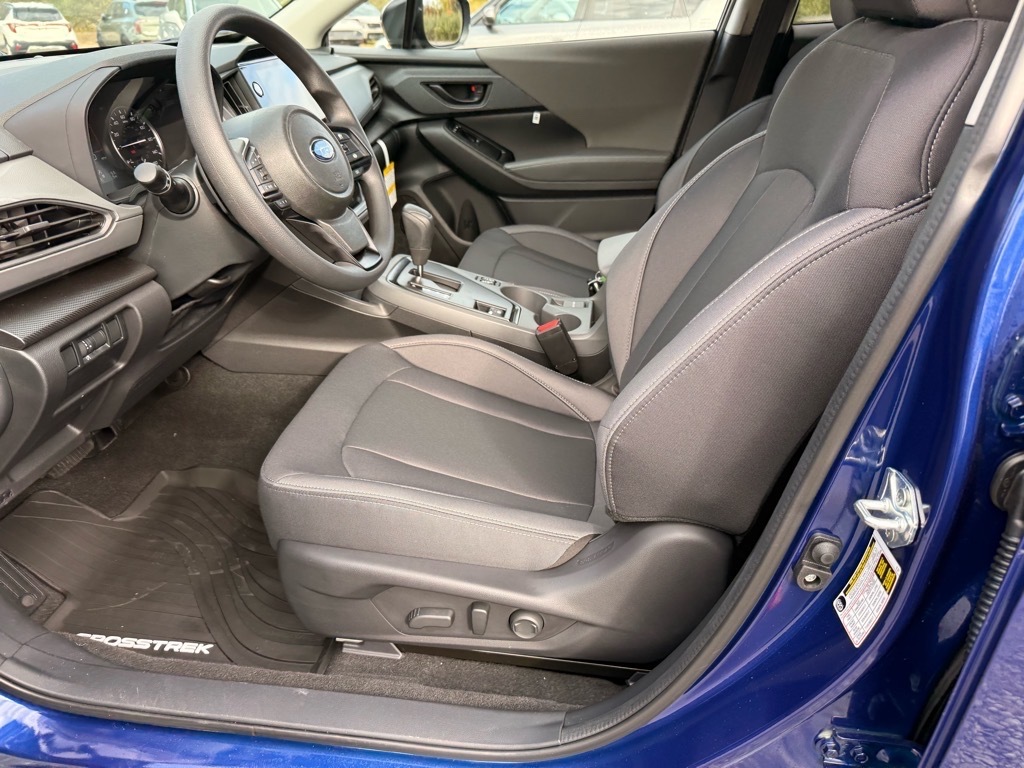 Sapphire Blue 2026 Subaru Crosstrek Premium AWD Lineartronic CVT 2.5L 4-Cylinder DOHC 16V This Vehicle Includes the Following Features:. 4-Wheel Disc Brakes, 6 Speakers, ABS brakes, Air Conditioning, All-Weather Floor Liners, Alloy wheels, AM/FM radio: SiriusXM, Anti-whiplash front head restraints, Auto High-beam Headlights, Auto-Dimming Mirror with Compass and HomeLink, Automatic temperature control, Brake assist, Bumpers: body-color, Cloth Upholstery, Driver door bin, Driver vanity mirror, Dual front impact airbags, Dual front side impact airbags, Electronic Stability Control, Emergency communication system: MySubaru Companion (5-years free), Exterior Parking Camera Rear, Four wheel independent suspension, Front anti-roll bar, Front Bucket Seats, Front Center Armrest, Front dual zone A/C, Front fog lights, Front reading lights, Fully automatic headlights, Illuminated entry, Knee airbag, LED Upgrade, Low tire pressure warning, Occupant sensing airbag, Outside temperature display, Overhead airbag, Overhead console, Panic alarm, Passenger door bin, Passenger vanity mirror, Power door mirrors, Power steering, Power windows, Radio data system, Radio: Subaru 11.6Multimedia Plus System, Rear anti-roll bar, Rear Bumper Cover, Rear seat center armrest, Rear side impact airbag, Rear window defroster, Rear window wiper, Remote keyless entry, Security system, Speed control, Speed-sensing steering, Split folding rear seat, Spoiler, Steering wheel mounted audio controls, Tachometer, Telescoping steering wheel, Tilt steering wheel, Traction control, Trip computer, Turn signal indicator mirrors, Variably intermittent wipers, and Wheels: 17x 7.0J Machine Finish Aluminum-Alloy. 26/33 City/Highway MPG