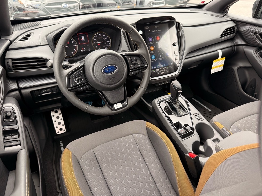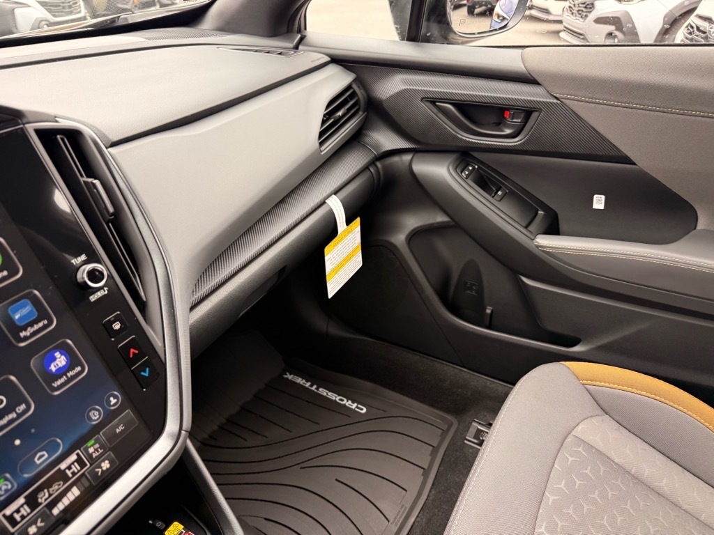 Crystal Black Silica 2026 Subaru Crosstrek Sport AWD Lineartronic CVT 2.5L 4-Cylinder DOHC 16V This Vehicle Includes the Following Features:. Standard Model, 4-Wheel Disc Brakes, 6 Speakers, ABS brakes, Air Conditioning, All-Weather Floor Liners, Alloy wheels, AM/FM radio: SiriusXM, Anti-whiplash front head restraints, Auto High-beam Headlights, Auto-Dimming Mirror with Compass and HomeLink, Automatic temperature control, Brake assist, Bumpers: body-color, Driver door bin, Driver vanity mirror, Dual front impact airbags, Dual front side impact airbags, Electronic Stability Control, Emergency communication system: MySubaru Companion (5-years free), Exterior Parking Camera Rear, Four wheel independent suspension, Front anti-roll bar, Front Bucket Seats, Front Center Armrest, Front dual zone A/C, Front fog lights, Front reading lights, Fully automatic headlights, Heated door mirrors, Heated Front Bucket Seats, Heated front seats, Illuminated entry, Knee airbag, Leather Shift Knob, Leather steering wheel, LED Upgrade, Low tire pressure warning, Occupant sensing airbag, Outside temperature display, Overhead airbag, Overhead console, Panic alarm, Passenger door bin, Passenger vanity mirror, Power door mirrors, Power steering, Power windows, Radio data system, Radio: Subaru 11.6Multimedia Plus System, Rear anti-roll bar, Rear Bumper Cover, Rear seat center armrest, Rear side impact airbag, Rear window defroster, Rear window wiper, Remote keyless entry, Security system, Speed control, Speed-sensing steering, Split folding rear seat, Spoiler, Sport Cloth Upholstery, Steering wheel mounted audio controls, Tachometer, Telescoping steering wheel, Tilt steering wheel, Traction control, Trip computer, Turn signal indicator mirrors, Variably intermittent wipers, and Wheels: 18x 7.0J Dark Gray Aluminum-Alloy. 26/33 City/Highway MPG