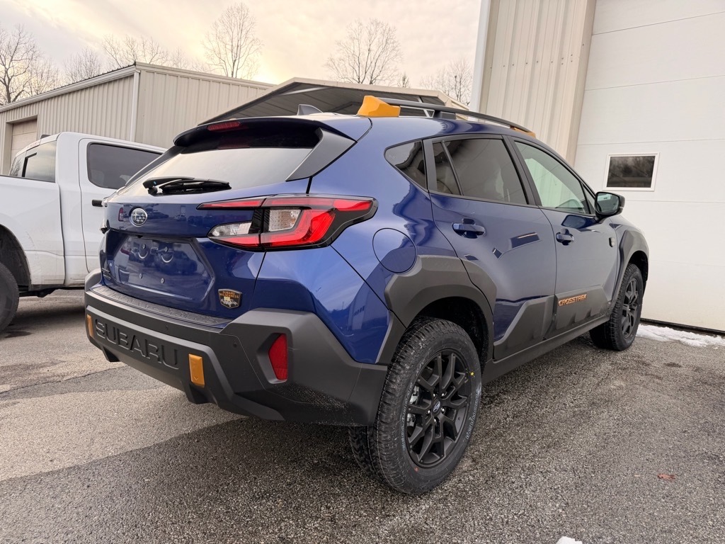Sapphire Blue 2026 Subaru Crosstrek Wilderness AWD Lineartronic CVT 2.5L 4-Cylinder DOHC 16V This Vehicle Includes the Following Features:. Crosstrek Mirror Package (Auto-Dimming Exterior Mirror with Approach Light and Auto-Dimming Mirror with Compass and HomeLink), 4-Wheel Disc Brakes, 6 Speakers, ABS brakes, Air Conditioning, Alloy wheels, AM/FM radio: SiriusXM, Anti-whiplash front head restraints, Auto High-beam Headlights, Automatic temperature control, Brake assist, Bumpers: body-color, Driver door bin, Driver vanity mirror, Dual front impact airbags, Dual front side impact airbags, Electronic Stability Control, Emergency communication system: MySubaru Companion (5-years free), Exterior Parking Camera Rear, Four wheel independent suspension, Front anti-roll bar, Front Bucket Seats, Front Center Armrest, Front dual zone A/C, Front fog lights, Front reading lights, Fully automatic headlights, Heated door mirrors, Heated Front Bucket Seats, Heated front seats, Heated steering wheel, Illuminated entry, Knee airbag, Leather Shift Knob, Leather steering wheel, LED Upgrade, Low tire pressure warning, Occupant sensing airbag, Outside temperature display, Overhead airbag, Overhead console, Panic alarm, Passenger door bin, Passenger vanity mirror, Power door mirrors, Power steering, Power windows, Radio data system, Radio: Subaru 11.6Multimedia Plus System, Rear anti-roll bar, Rear Bumper Cover - Wilderness, Rear seat center armrest, Rear side impact airbag, Rear window defroster, Rear window wiper, Remote keyless entry, Security system, Speed control, Speed-sensing steering, Split folding rear seat, Spoiler, Steering wheel mounted audio controls, Tachometer, Telescoping steering wheel, Tilt steering wheel, Traction control, Trip computer, Turn signal indicator mirrors, Variably intermittent wipers, Wheels: 17x 7.0J Matte Black Aluminum-Alloy, and Wilderness StarTex Upholstery. 24/29 City/Highway MPG