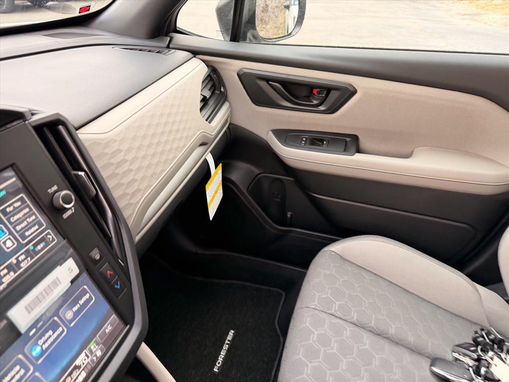Crystal White Pearl 2026 Subaru Forester AWD Lineartronic CVT 2.5L 4-Cylinder DOHC 16V This Vehicle Includes the Following Features:. Standard Model, 4 Speakers, 4-Wheel Disc Brakes, ABS brakes, Air Conditioning, Alloy wheels, AM/FM radio: SiriusXM, Anti-whiplash front head restraints, Auto High-beam Headlights, Auto-Dimming Mirror with Compass and HomeLink, Automatic temperature control, Brake assist, Bumpers: body-color, Driver door bin, Driver vanity mirror, Dual front impact airbags, Dual front side impact airbags, Electronic Stability Control, Exterior Parking Camera Rear, Four wheel independent suspension, Front anti-roll bar, Front Bucket Seats, Front Center Armrest, Front dual zone A/C, Front reading lights, Fully automatic headlights, Hexagonal Patterned Cloth Upholstery, Illuminated entry, Knee airbag, Low tire pressure warning, Occupant sensing airbag, Outside temperature display, Overhead airbag, Overhead console, Panic alarm, Passenger door bin, Passenger vanity mirror, Power door mirrors, Power steering, Power windows, Radio data system, Radio: Subaru Dual 7.0Multimedia System, Rear anti-roll bar, Rear Bumper Cover, Rear window defroster, Rear window wiper, Remote keyless entry, Security system, Speed control, Speed-sensing steering, Split folding rear seat, Spoiler, Steering wheel mounted audio controls, Tachometer, Telescoping steering wheel, Tilt steering wheel, Traction control, Trip computer, Variably intermittent wipers, and Wheels: 17x 7.0 J Dark Metallic Aluminum-Alloy. 26/33 City/Highway MPG