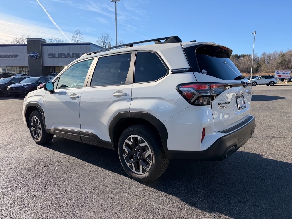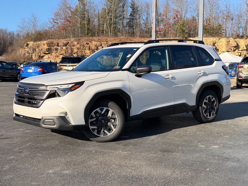 Crystal White Pearl 2026 Subaru Forester Premium AWD Lineartronic CVT 2.5L 4-Cylinder DOHC 16V This Vehicle Includes the Following Features:. Power Rear Gate and Blind Spot Detection with Rear Cross Traffic Alert (Automatic Emergency Steering, Blind-Spot Detection (BSD)/RCTA System, Emergency Lane Keep Assist, and Power Rear Gate), 4-Wheel Disc Brakes, 6 Speakers, ABS brakes, Air Conditioning, Alloy wheels, AM/FM radio: SiriusXM with 360L, Anti-whiplash front head restraints, Auto High-beam Headlights, Auto-Dimming Exterior Mirror with Approach Light, Auto-Dimming Mirror with Compass and HomeLink, Automatic temperature control, Brake assist, Bumpers: body-color, Driver door bin, Driver vanity mirror, Dual front impact airbags, Dual front side impact airbags, Electronic Stability Control, Emergency communication system: MySubaru Companion (5-years free), Exterior Parking Camera Rear, Four wheel independent suspension, Front anti-roll bar, Front Bucket Seats, Front Center Armrest, Front dual zone A/C, Front fog lights, Front reading lights, Fully automatic headlights, Heated door mirrors, Heated Front Bucket Seats, Heated front seats, Illuminated entry, Knee airbag, Leather steering wheel, LED Upgrade, Low tire pressure warning, Occupant sensing airbag, Outside temperature display, Overhead airbag, Overhead console, Panic alarm, Passenger door bin, Passenger vanity mirror, Power door mirrors, Power driver seat, Power moonroof: Panoramic, Power steering, Power windows, Premium Textured Cloth Upholstery, Radio data system, Radio: Subaru 11.6Multimedia Plus System, Rear anti-roll bar, Rear Bumper Cover, Rear seat center armrest, Rear window defroster, Rear window wiper, Remote keyless entry, Security system, Speed control, Speed-sensing steering, Split folding rear seat, Spoiler, Steering wheel mounted audio controls, Tachometer, Telescoping steering wheel, Tilt steering wheel, Traction control, Trip computer, Variably intermittent wipers, and Wheels: 17x 7.0 J Dark Metallic Aluminum-Alloy. 26/33 City/Highway MPG