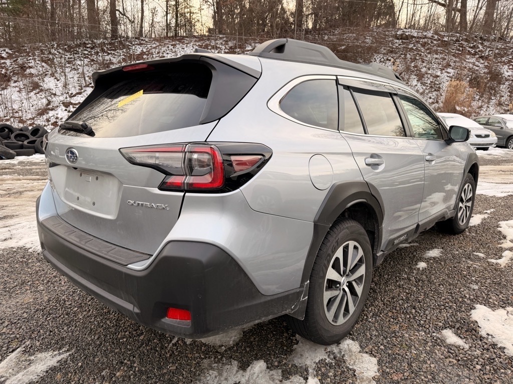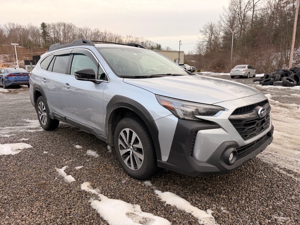 Ice Silver Metallic 2025 Subaru Outback Premium AWD CVT Lineartronic 2.5L 4-Cylinder DOHC 16V This Vehicle Includes the Following Features:. Popular Package #1A (All-Weather Floor Liners, Auto-Dimming Mirror w/Compass & HomeLink, and Rear Bumper Cover), Standard Model, 4-Wheel Disc Brakes, 6 Speakers, ABS brakes, Air Conditioning, Alloy wheels, AM/FM radio: SiriusXM with 360L, Apple CarPlay & Android Auto, Auto High-beam Headlights, Automatic temperature control, Brake assist, Bumpers: body-color, Cloth Upholstery, Driver door bin, Driver vanity mirror, Dual front impact airbags, Dual front side impact airbags, Electronic Stability Control, Emergency communication system: MySubaru Safety (3-year free trial), Exterior Parking Camera Rear, Four wheel independent suspension, Front anti-roll bar, Front Bucket Seats, Front Center Armrest w/Storage, Front dual zone A/C, Front fog lights, Front reading lights, Fully automatic headlights, Heated door mirrors, Heated Front Bucket Seats, Heated front seats, Illuminated entry, Knee airbag, Leather Shift Knob, Leather steering wheel, Low tire pressure warning, Occupant sensing airbag, Outside temperature display, Overhead airbag, Overhead console, Panic alarm, Passenger door bin, Passenger vanity mirror, Power door mirrors, Power driver seat, Power steering, Power windows, Radio: Subaru 11.6Multimedia Plus System, Rear anti-roll bar, Rear seat center armrest, Rear window defroster, Rear window wiper, Remote keyless entry, Roof rack, Security system, Speed control, Speed-sensing steering, Splash Guards, Split folding rear seat, Spoiler, Steering wheel mounted audio controls, Tachometer, Telescoping steering wheel, Tilt steering wheel, Traction control, Trip computer, Turn signal indicator mirrors, Variably intermittent wipers, and Wheels: 17x 7J Black Aluminum-Alloy.