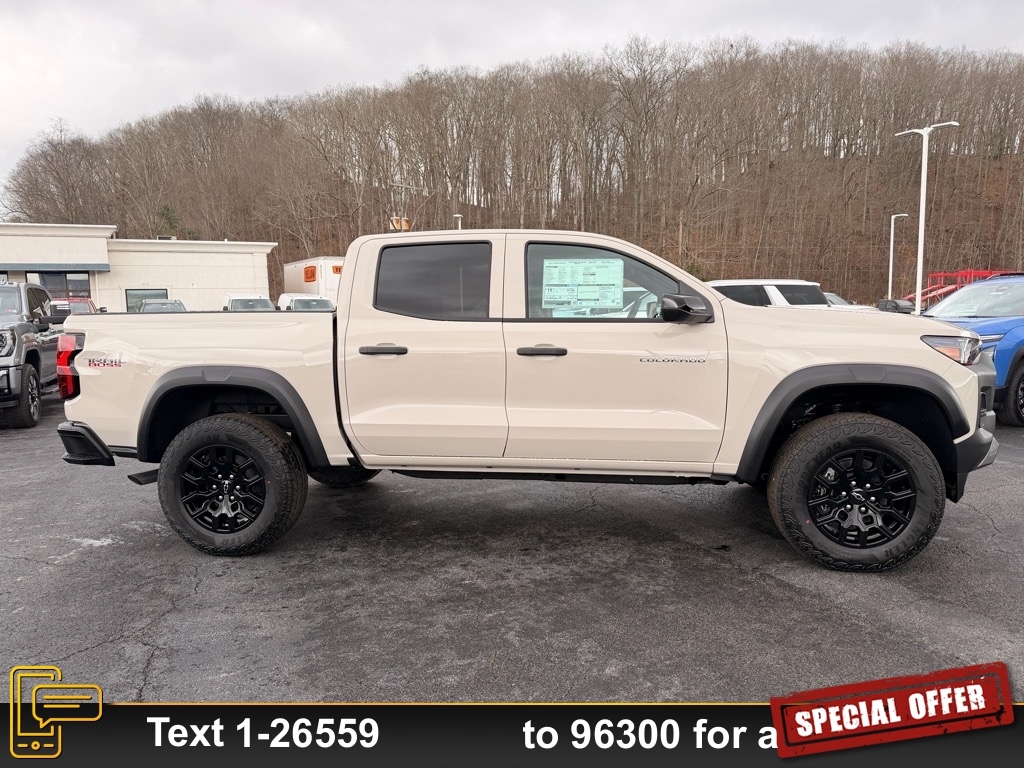 2026 Chevrolet Colorado Trail Boss White Sands 4WD 8-Speed Automatic 2.7L I4 Turbocharged DOHC 16V LEV3-ULEV50 310hp Lifetime no charge WV or VA Inspection Stickers at Ramey Auto Group!, !!NEW LOWER PRICE!!, 4WD. Internet price includes manufacturer incentives and dealer discounts. Tax, Title, Tags and documentary fee of $575 not included in price. Additional offers may be available. See Dealer for Details. Price includes: $500 - Chevrolet Consumer Cash Program. Exp. 01/02/2026 $500 - GM Military Cash Allowance Program. Exp. 01/02/2026