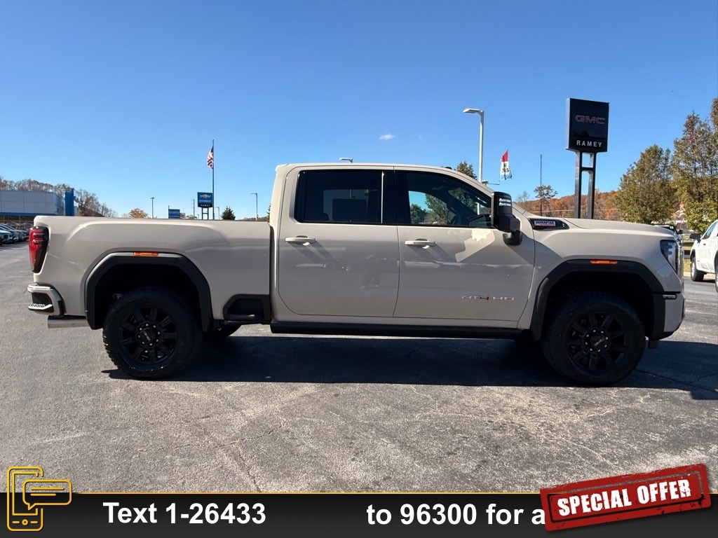 2026 GMC Sierra 2500HD AT4 Coastal Dune 4WD 10-Speed Automatic Duramax 6.6L V8 Turbodiesel Lifetime no charge WV or VA Inspection Stickers at Ramey Auto Group!, !!NEW LOWER PRICE!!, 10-Speed Automatic, 4WD, Jet Black With Kalahari Accents Leather. Internet price includes manufacturer incentives and dealer discounts. Tax, Title, Tags and documentary fee of $575 not included in price. Additional offers may be available. See Dealer for Details. Price includes: $500 - Buick & GMC Consumer Cash Program. Exp. 03/02/2026 $500 - GM First Responder Cash Allowance Program. Exp. 01/04/2027